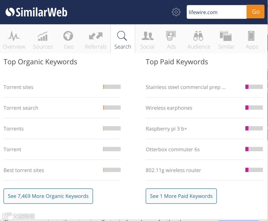 使用这个工具可以在竞争对手身上找到很多有价值的数据,我们只需要输入竞争对手的关键词或网址,就可以检索他们正在使用的关键字以及他们获得的平均流量。