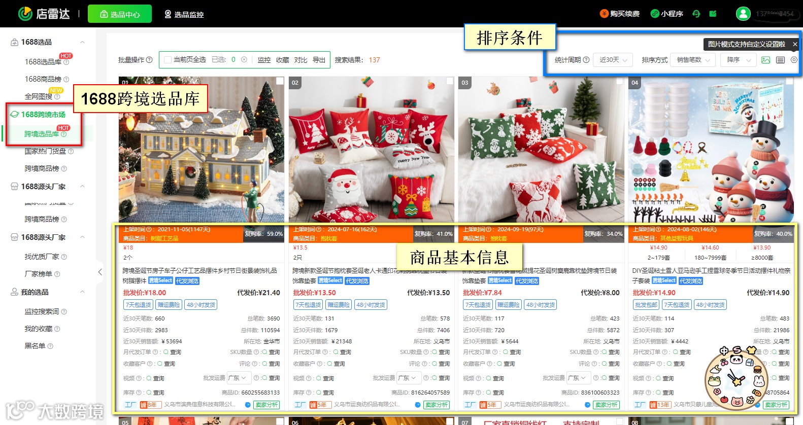 在我们选定要为哪些节日而准备选品后,我们至少要提早2-3个月到1688平台进货,时效性在跨境电商中是非常重要的。我们不仅需要提前选定货品,还要筛选出靠谱的货源。因为1688平台的筛选条件比较少,会耗费大量人力成本来进行归纳整合信息,所以需要用一些选品工具来帮助进行筛选工作,店雷达就是一个很省心的1688选品工具,直接在浏览器搜索即可使用。