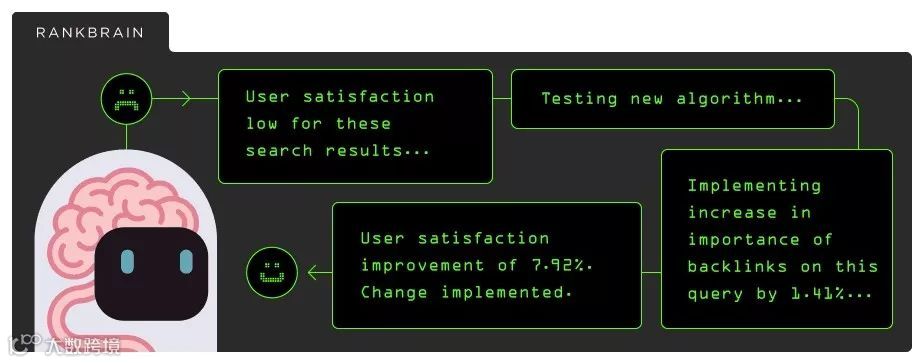 简单的来说,RankBrain简单地衡量用户如何与搜索结果互动,根据用户与搜索引擎的互动对结果进行排序。