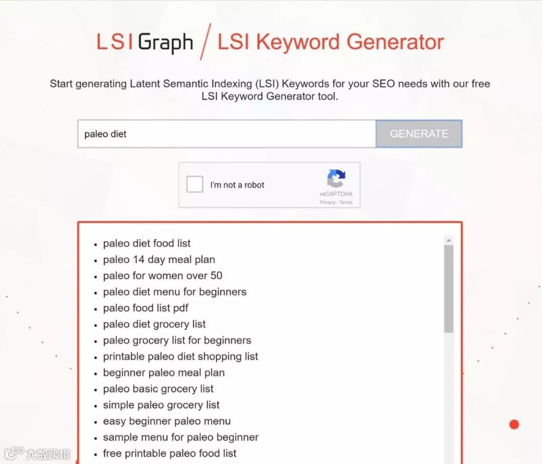 只需将目标关键字输入到工具中,它就会显示出一系列与该术语相关的LSI关键字: