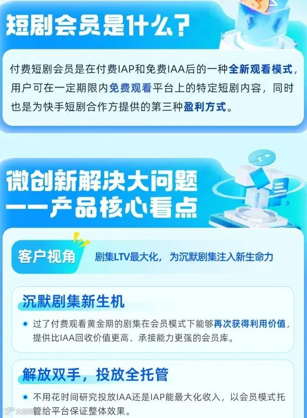 值得注意的是,“付费短剧会员”模式是快手为短剧合作方提供的第三种商业变现模式。此前,快手短剧合作方的收入主要分为IAP模式(应用内购买)和广告解锁模式两种。