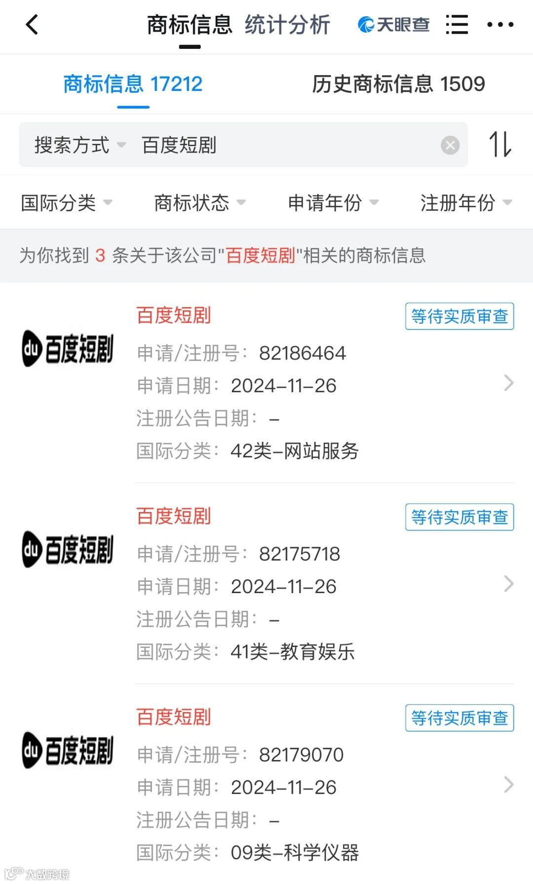 7月,百度投资数百万美元于AI短剧公司CreativeFitting井英科技;9月,与点众科技达成战略合作,计划未来一年合作推出20部以上精品微短剧;10月,百度短剧上线Agent对话功能,该功能在百度App设有多个入口;11月,百度在线网络技术(北京)有限公司申请注册“百度短剧”商标,进一步巩固品牌地位。