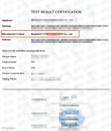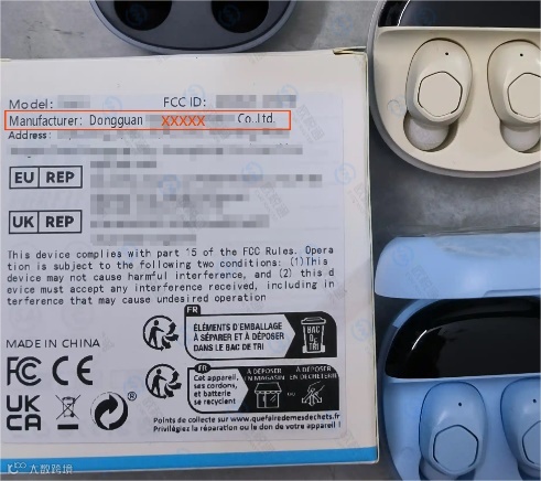 该卖家实拍图中显示的商品制造商信息为“Dongguan xxxxx Co.,Ltd”,与资质文件中制造商“Shenzhen xxxxx Co.,Ltd”明显不一致。制造商、电压等关键数据不一致:此类情况下,检测报告无法视为该产品的有效文件,判定为未合规产品,该产品无法在欧盟市场销售。