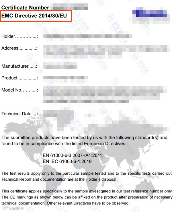 该卖家提交的证书中满足的指令是2014/30/EU,这属于EMC电磁兼容指令。CE-RED证书需要满足的指令是2014/53/EU。该证书由于指令错误问题属于资质文件无效,如果出现证书错误问题,卖家应立即马上联系检测机构重新检测或制作报告。