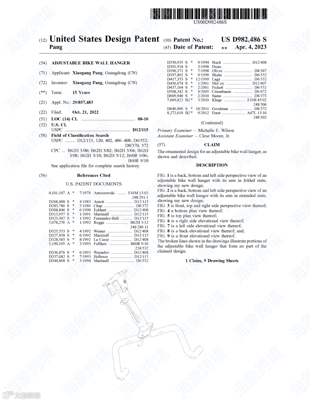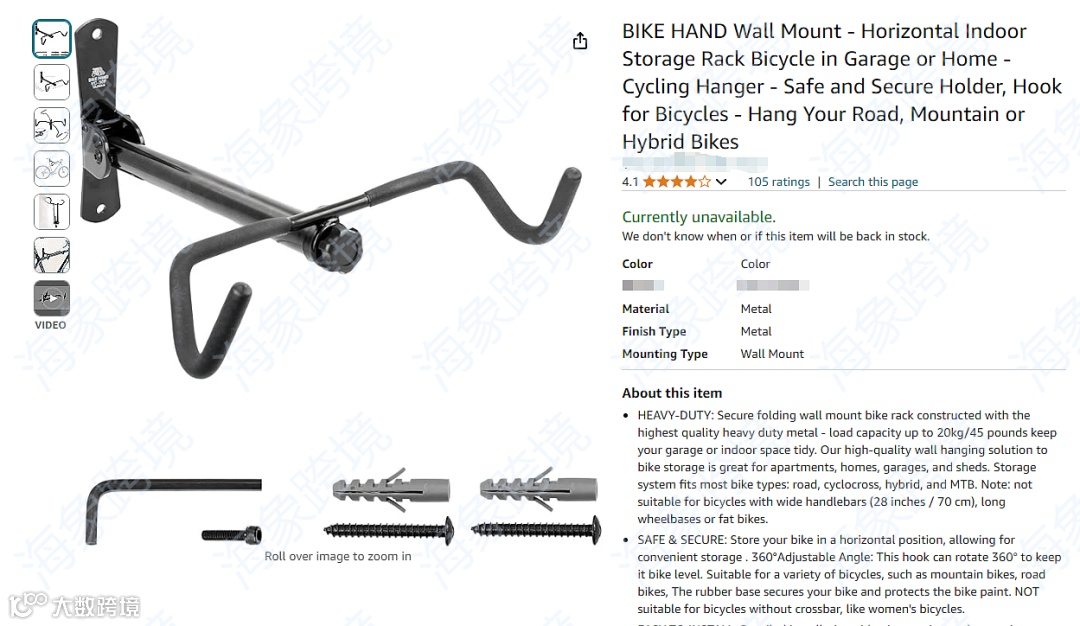 原告是中国卖家,起诉被告侵犯其专利权。原告的专利产品是一款创新的可调节自行车壁挂架,专门设计用于将自行车安全地悬挂在墙上以节省空间。该壁挂架由多个可调节长度的臂组成,每个臂连接到一个支撑杆上。臂的末端设计有一个四边形多边形的支撑面,用于稳固地将壁挂架固定到墙面上。这种设计不仅提升了安装的便捷性,还使得壁挂架能够根据需求调整长度,适配不同规格的自行车存放需求。此专利产品已获得合法授权,并且原告主张其专利权遭到了侵害,要求法院判决被告停止侵权行为并承担相应的赔偿责任。