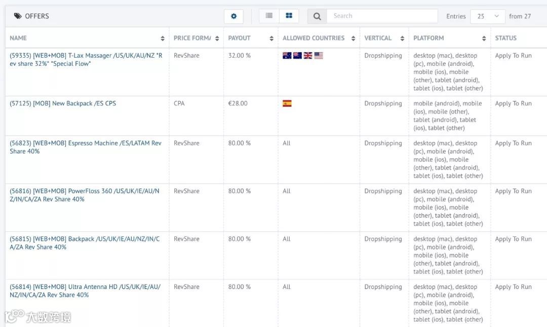 类似clickdealer这样大的联盟平台,有很多dropshipping的Offer,佣金都比较高,有的达到销售金额的80%,Medie Buyer不需要制作网站,不需要解决发货售后问题,可以随意选择测试很多产品,商家不需要花费任何广告费用,只需要分给Medie Buy一部分佣金,就会有大量的有能力推广的人帮你推广,商家只需要解决发货和售后问题,联盟平台找可以推广的人和需要推广的人赚取中间的差价。