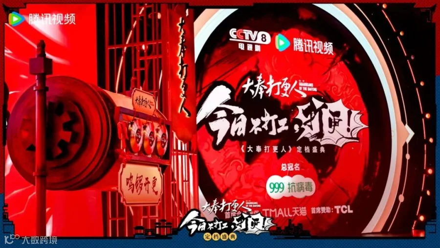 剧集尤其是大剧,定档、开播、剧中高潮、收官每个节点都有空间造势引流,这也给了品牌借势植入的机会。比如年末“爆款预定”《大奉打更人》在开播前举办了一场“定档盛典”直播,仅盛典就拿下了999、天猫、TCL等品牌的冠名赞助。而品牌也并非单纯直播露出,在线下搭建品牌营销场景、发放品牌周边、和剧粉深度互动,剧播之前就借势IP完成了一次强心智占领。
