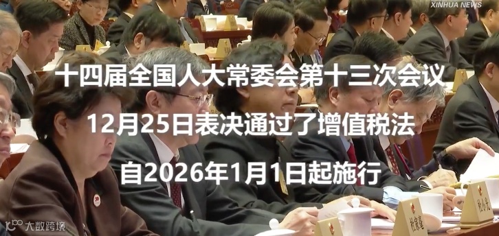 十四届全国人大常委会第十三次会议25日表决通过了增值税法,自2026年1月1日起施行。我国第一大税种增值税有了专门法律,税收立法再进一程。