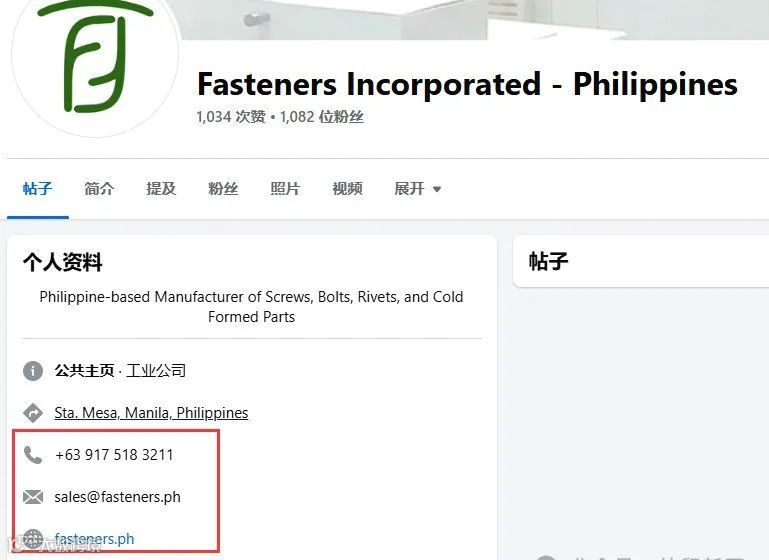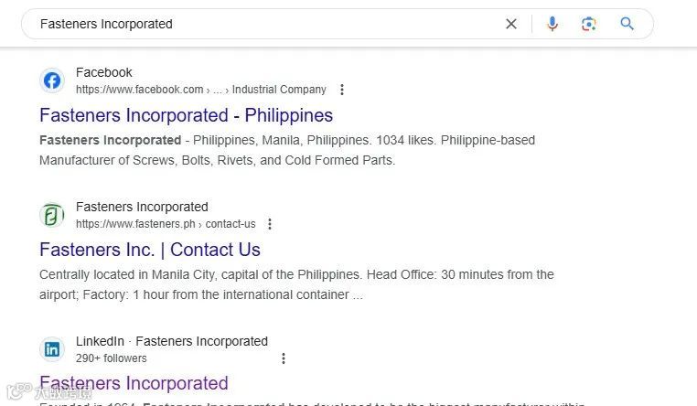 第一步,利用谷歌地图搜索 “关键词 + 地区”,这样可以限定在某一特定地区。例如,输入 “Fastener in Philippines”,下面会出现许多同行业店铺,其中有些带有官网和电话。这里优先选择带有公司官网的主页。