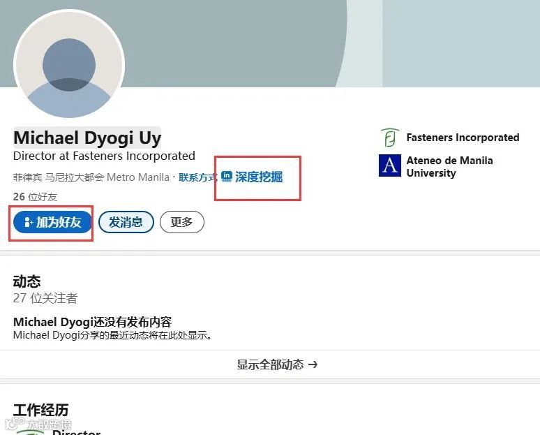 这里可以选择加好友,或者结合领英插件寻找联系邮箱。