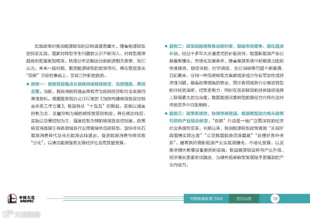 报告预测,政策领域将呈现三种新趋势——管控重点从能耗转向碳排放、政策措施从直接补贴转向目标约束和市场机制、转型动力从政策外驱转向产业内驱。
