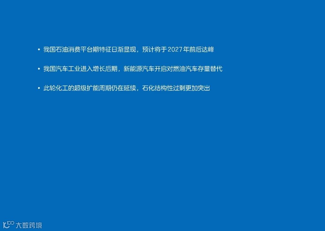 2024年,中国石油消费总量罕见下降,为7.5亿吨。预计“十五五”期间,在化工用油增长托举下,中国石油消费总量都将处于7.7亿吨以上的平台期,峰值7.9亿至8.0亿吨。到2060年,中国石油消费总量将降至2.6亿吨左右。