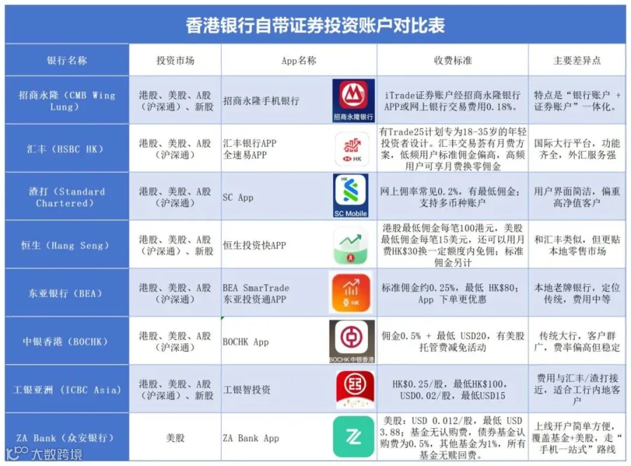 👉 直接通过香港银行账户自带的投资功能投资港美股。