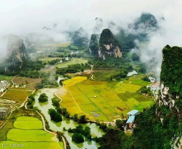 Ming-shi Countryside, a celebrated landscape gallery, is near to the Sino-Vietnam border in Kanyu Town, Daxin County, some 37 kilometers to Detian Waterfall and 210 kilometers to Nanning- the capital city of Guangxi Zhuang Autonomous Region. With typical karst features, Ming-shi Countryside is hailed as the “seclusion for anchorites” due to its peaceful scenery with green hills, clear waters and dotted cottages. A beauteous and intoxicating space isolated from the noisy world, time is suspended here that every guest can not help but slow down for fear of disturbing the tranquility of this fairyland on earth.