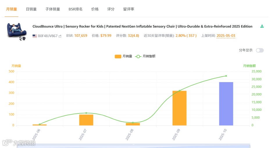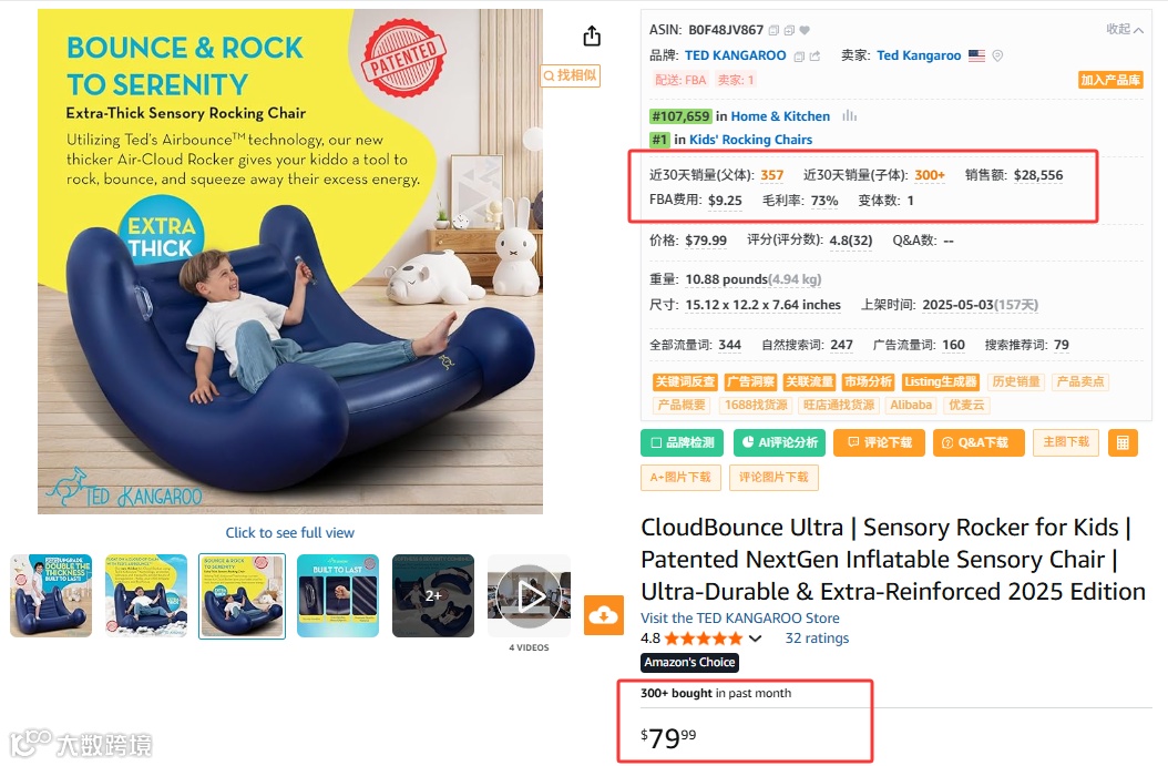 这款充气儿童摇摇椅上架157天,已经占据了BS榜单第一名。