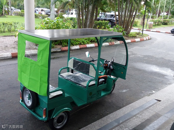 在菲律宾,一位店主销售的国产三蹦子配置了光伏顶棚,可以“增程”大约35%:原来只能跑70公里的三蹦子,在东南亚可以跑100多公里。