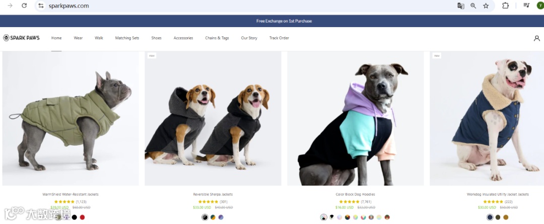 专做宠物用品的sparkpaws正是靠精准的营销策略,年营收超1600万美元,当前独立站畅销品是4款不同款式的冬季狗狗服饰。