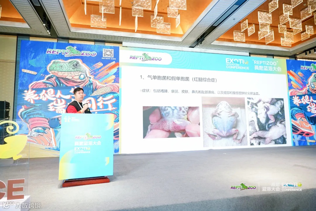 云宠纪动物医院院长陈佳佳:龟类疾病的辨别与基础诊疗详解郑州陈佳佳异宠云宠纪动物医院总院长陈佳佳在会议现场,以《龟类常见疾病的辨别与基础诊疗》为主题进行了分享。现场她表示,龟类异宠的疾病可以系统性的按照“眼睛、皮壳、消化道、呼吸道、生殖系统、肢体神经”等进行分类,在碰到相关症状时可以通过下列方法尝试解决。在龟类异宠眼睛疾病方面,一般会出现”失明、眼皮肿、闭眼、凸眼、眼凹/眼睛下陷、眼球凹陷、眼分泌物“等现象。其最常见的是白眼病,症状为闭眼、眼睛肿或白,病因多为缺乏维生素 A、细菌感染等,常规治疗用消炎和补充维生素 A 的眼药膏、眼药水,偏方有五色花毒水等,但要注意浓度。蛋龟或新龟类的眼睛脓肿一般需要动手术。在龟类异宠皮肤龟壳疾病方面,一般会出现”皮下肿胀、淤血红斑、皮肤发白、壳破裂、喙、脚掌肿张、软甲、壳畸形扭曲、隆背、水肿或腹水“等现象。如果是变红则可能是斑血症,变白多与霉菌有关,掉甲可能是慢性疾病,皮革分离一般是衰竭,皮壳连接处的脓肿需要动手术处理。在龟类异宠的胃肠道疾病方面,一般会出现”白舌头、拉稀、呕吐、便秘、胀气、泄殖孔流血“等现象。其中,肠炎、肠梗阻较为常见,病因包括传染病、用药、过量投喂等,可能导致呕吐、胀气等,可通过口腔症状、拍片等诊断。在龟类异宠呼吸道疾病方面,一般会出现”流鼻涕、口腔粘液多、鼻孔侵袭不见、鼻孔周围组织变形、无法潜水“等现象。通常鼻涕、鼻孔大小或颜色变化、张嘴呼吸等可能是感冒或支原体感染或肺炎,可通过拍片诊断,治疗这种疾病需要用药。在龟类异宠生殖疾病方面,一般会出现”阴茎脱出、难产、腹腔两侧非卵状硬物“等现象。在龟类异宠的肢体疾病方面,一般会出现”跛行、长骨肿胀、头肌萎缩“等现象。这类疾病通常需要前往专科医院进行及时诊断以及就医。守诺医院陈实:蛇、蜥蜴疾病的辨别与基础诊疗详解上海守诺医院异宠专科异宠主治医生陈实在会议现场,以《蛇类&蜥蜴类常见疾病的辨别与基础诊疗》为主题进行了分享。现场他表示,宠物蛇常见的外伤包括肛周脓疮、烫伤、咬伤、真菌性皮肤病、撕裂伤等,在处理上述症状时可以采取下列措施。但需要注意的是蛇蜥类大部分外伤不适合每天清创,且碘伏不利于伤口愈合,仅适用于表皮杀菌和抗真菌,需要酌情使用。1、肛周脓疮:可以通过摘掉臭腺体,开放清创抗感染治疗。2、烫伤:可以通过保持干燥,预防性给予抗生素治疗。3、咬伤:可以通过使用洗必泰或双氧水把伤口消毒清创治疗。4、真菌性皮肤病:可以通过给予外涂药和肌注抗真菌药治疗。5、撕裂伤:可以通过缝合以及抗感染治疗。蛇类与蜥蜴类的常见眼科疾病包括”守宫眼内卡皮、缺乏va症、蛇的眼盖卡皮“等,若是粘连严重,则可以等下次蜕皮周期或立即就医。1、卡眼皮:主要因素是脱水,可让蛇自行蹭湿草纸,或涂抹植物油处理。2、哈士腺炎:这种情况不仅是眼病,一般伴随着并发病,要标本兼治,采集积液时注意无菌操作。在呼吸道疾病方面,蟒蛇和蚺类的病毒性肺炎较为常见。早期可用雾化治疗,但要注意时间和管道加热。中后期要到医院检查区分细菌性和病毒性,繁殖户可做培养药品实验。在消化系统疾病方面,蛇类宠物在进食时很容易引发呕吐、不消化等问题,肝胆系统也易出现脂肪变等疾病。对此,治疗要禁食禁水,抑制酶分泌,可使用乌斯达丁、凹曲肽等药物进行治疗。最后他还介绍了蛇类与蜥蜴类宠物,在饲养环境布置方面的知识,他表示为了宠物的健康,垫材要选择不含甲醛的环保材料,饲养环境中最好不要使用合成木材,可以选择白杨木等天然木材。此外在饲养中还要注意灯具温控的定期检查更换、环境的通风性要做好,水盆要注意卫生防止交叉感染等。异宠专科会张弦:蛙类疾病的辨别与基础诊疗详解CSAVMA异宠专科会会员张弦在会议现场,以《蛙类常见疾病的辨别与基础诊疗》为主题进行了分享。现场他表示,蛙类通常容易患“细菌性疾病、真菌性疾病、寄生虫、病毒、营养性疾病”,并详细讲解了如何辨别所患的病种以及基础的治疗方法。在蛙类爬宠细菌性疾病方面,最常见的是“气单胞菌、水霉、分枝杆菌病、衣原体”等:1、气单胞菌和假单胞菌:通常表现为嗜睡、衰弱、皮肤、鼻孔和趾部溃疡,以及腿部和腹部皮肤针尖状出血。可以通过使用针对性的药敏抗生素解决,例如:头孢他啶、多西环素、恩诺沙星等。2、水霉:通常表现为体表附着有大量的白色或者灰白色棉絮状物,可以通过使用盐水浴、 亚甲蓝药浴解决。继发症通常发于水质差和严重微生物污染处,可以通过改善水质解决。3、分枝杆菌病:通常表现为肝、肾、肺和其他体腔脏器的结核性肉芽肿,主要发生于体弱动物。4、衣原体:通常表现为猝死、非特异性临床状,嗜睡或者类似红腿综合症,可以通过使用四环素类药物解决。真菌性疾病方面,蛙类异宠最常见的是壶菌病,其通常表现为有肉眼可见的的皮肤病变,一般位于身体和足部,可以通过伊曲康唑、特比萘芬、氯霉素的药浴解决。寄生虫方面,线虫可以通过双羟萘酸噻嘧啶、伊维菌素治疗;原虫可以通过甲硝唑、土霉素治疗;微孢子虫可以通过琥珀酸钠氯霉素治疗;球虫可以通过磺胺嘧啶、磺胺二甲嘧啶治疗。病毒方面,