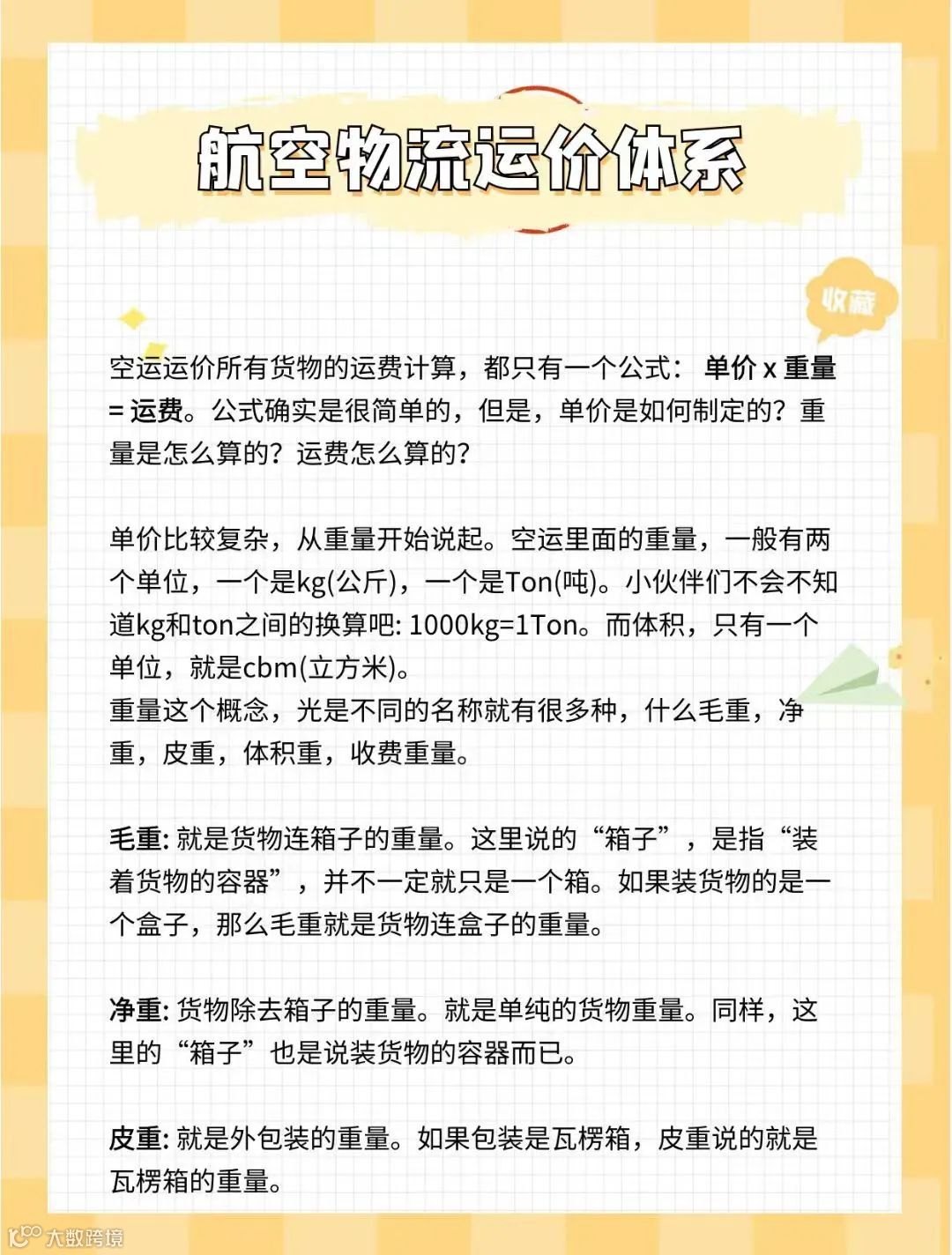 空运费用的计算主要基于货物的重量和体积。一般来说,有两种计费方式: