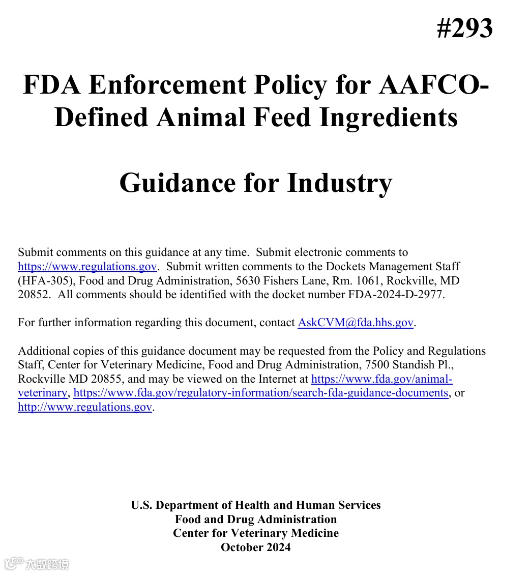 为此,FDA发布了两份与过渡阶段相关的指导文件草案——GFI #293草案:FDA对AAFCO定义的动物饲料成分的执行政策,以及GFI #294草案:动物食品成分咨询(AFIC)。