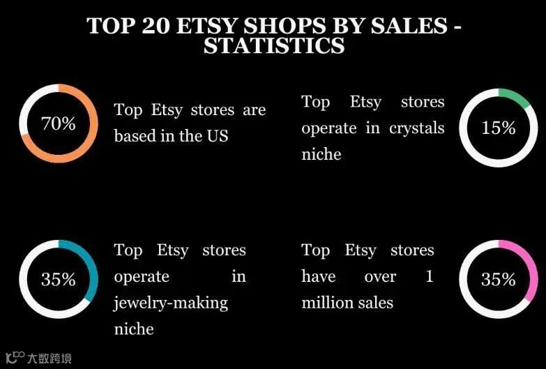 这20家最畅销的Etsy商店每家的销量至少达到了71.7万件。加起来,已经超过2100万件,产品范围从珠宝用品和治疗水晶到种子和派对用品都有。