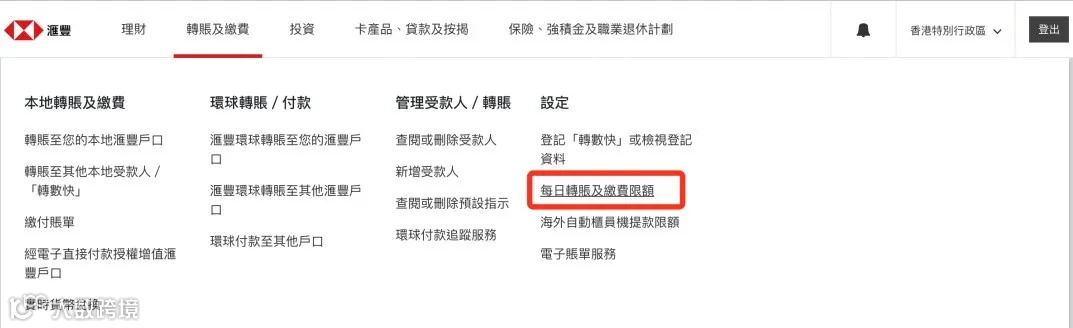 - 针对已登记的受款人,最高可设置为300万港币转账额度。