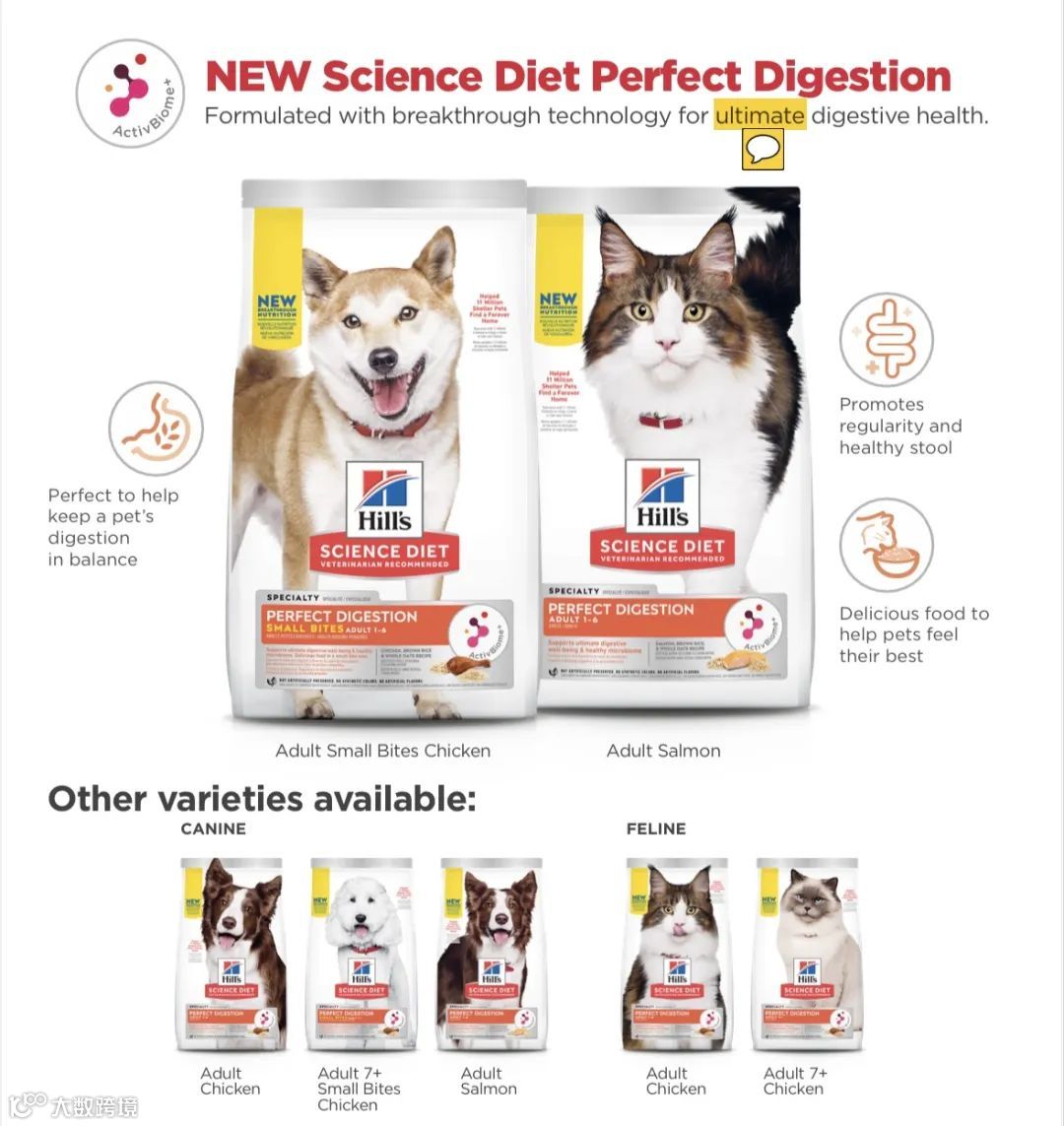此外,该系列产品还特别添加了维生素E、Omega-6等多重营养成分和抗氧化因子,兼具美毛护肤、提高免疫等复合功能性优势。对此,宠物行业观察也认为,在产品具备核心的创新解决方案之外,尽可能拓展并优化产品的功能性,或许也是希尔思能够保持产品力领先的底层逻辑之一 。