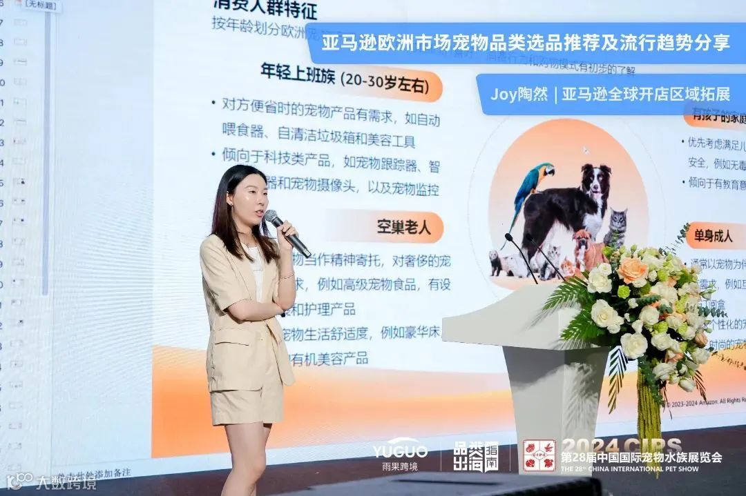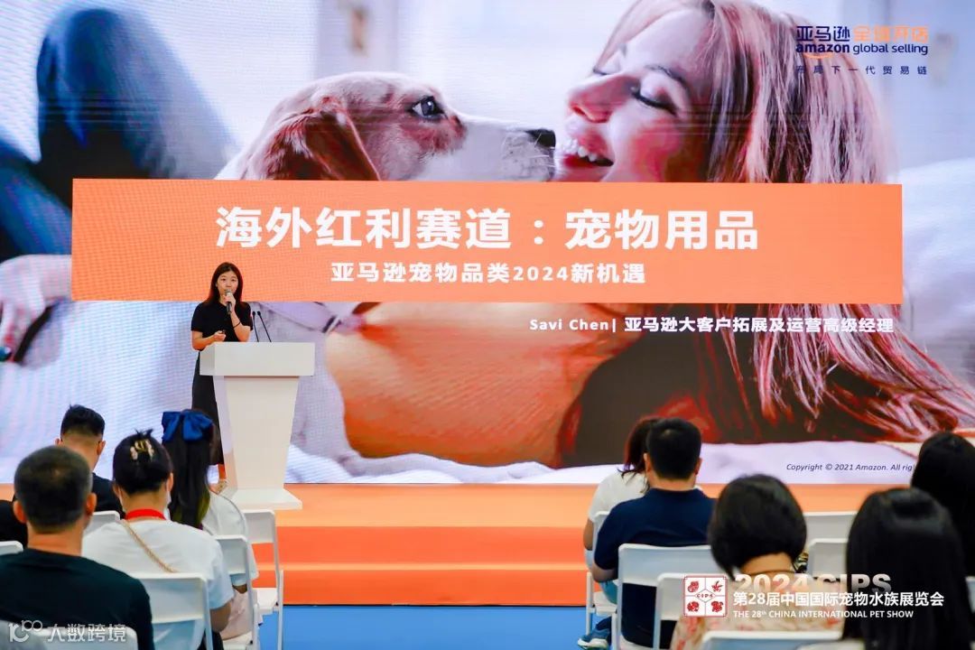 亚马逊大客户拓展高级经理Savi Chen以《亚马逊美国市场宠物类目机会点分析》为题,现场从海外市场概況与消费新趋势、热卖子品类及运营贴士,以及合规认证及实用贴士等维度进行了干货内容分享。