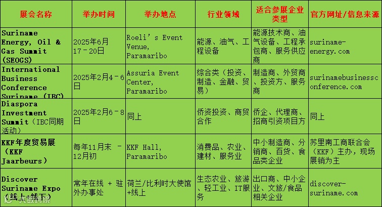 苏里南2025年主要的国际性展会表: