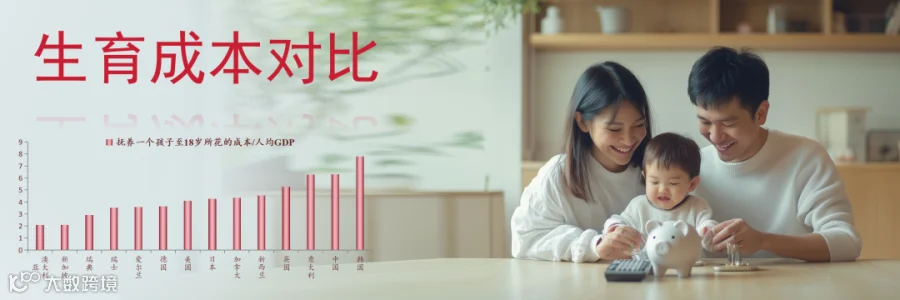 我们将养育成本进行国际比较:把一个孩子抚养到刚年满18岁所花的成本相对于人均GDP的倍数,澳大利亚是2.1倍,法国是2.2倍,瑞典是2.9倍,德国是3.6倍,美国是4.1倍,日本是4.3倍,中国是6.3倍,几乎是全球最高的。
