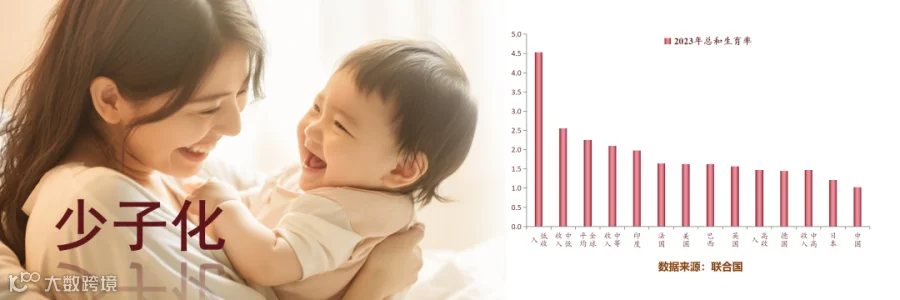 我们再来看少子化。2022年我国总和生育率跌破1.1,2023年只有1左右。