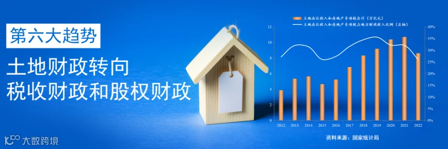 第六大趋势:土地财政难以为继,向税收财政和股权财政转型是必由之路。过去几十年,在房地产市场快速增长的时期,土地财政对于补充地方财力、推动经济增长、完善城市基础设施建设等发挥了积极作用。