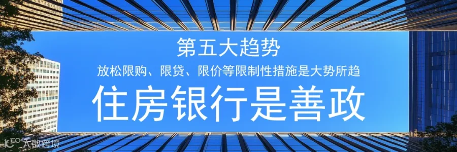 第五大大趋势:放松限购、限贷、限价等限制性措施是大势所趋,住房银行是善政。后房地产时代,供求关系发生重大变化,房地产政策的重点从防过热转向防过冷,未来将逐步放松限制性措施,释放刚需和改善型需求,促进市场止跌回稳。