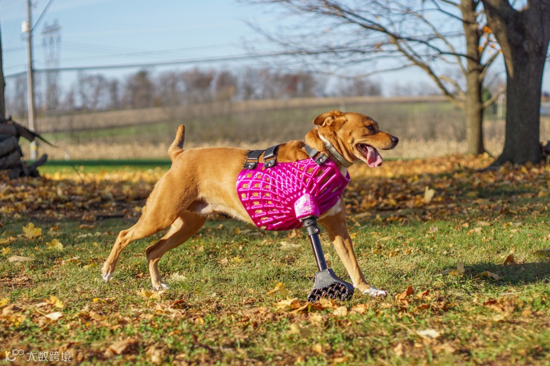 在宠物医疗领域,3D打印技术的应用性更加广泛。最常见的莫过于为残疾宠物量身定做的3D打印假肢、轮椅、矫正器等等。例如去年8月苹果公司和主播马克斯・布朗利联合发布的视频中,就展示了3DPets公司利用iPhone 14 Pro 上的 LiDAR 传感器,为残疾宠物3D打印假肢的实际应用场景。
