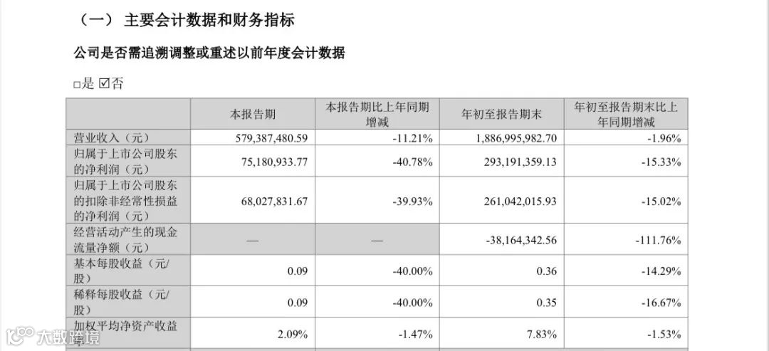 第三季度,归属于上市公司股东的净利润1.06亿元,同比增加5.44%。前三季度约2.78亿元,同比下降3.11%。