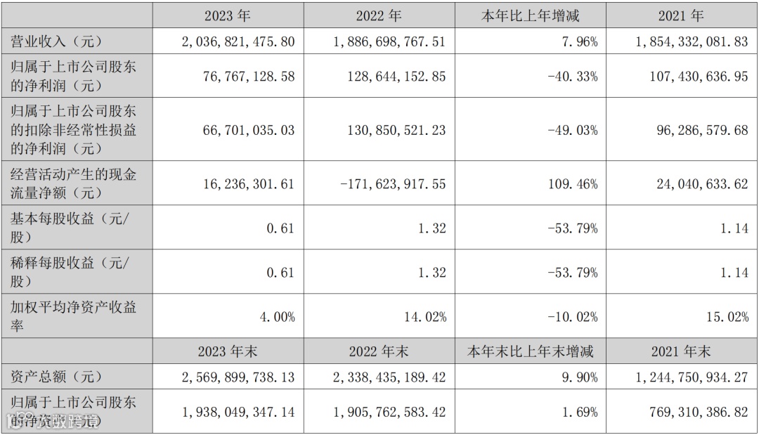 财报显示,2023年天元宠物总营收为20.36亿元,同比2022年增长7.96%;归属于上市公司股东的净利润为7676万元,同比2022年下降40.33%。