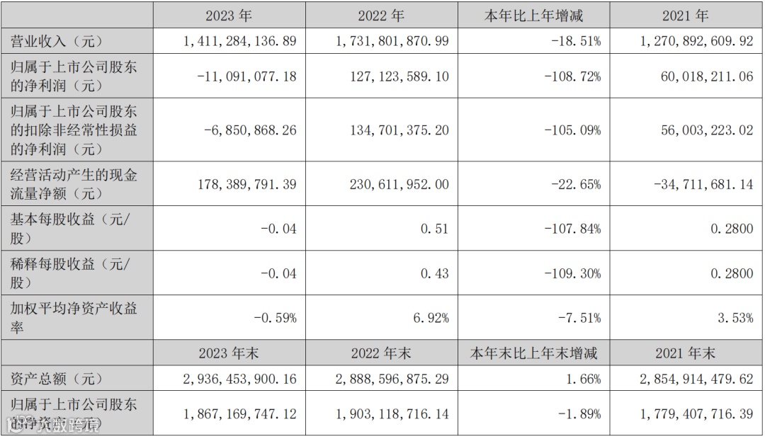 佩蒂股份2023全年营收14.11亿元,同比2022年下降18.51%;归属于上市公司股东的净利润-1109万元,同比去年下降108.72%。