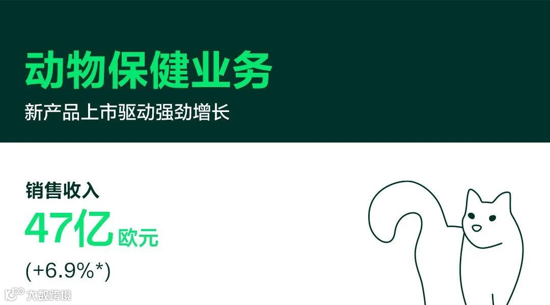 分业务来看,集团人用药品业务总销售额208亿欧元,同比增长10.3%;动物保健业务总销售额47亿欧元,同比增长6.9%,两大业务表现均优于市场平均水平。