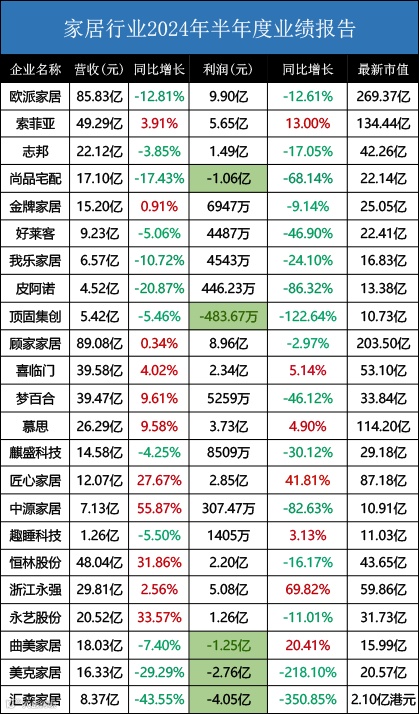 153家上市家居企业上半年业绩大盘点,其中74家增长势头强劲!