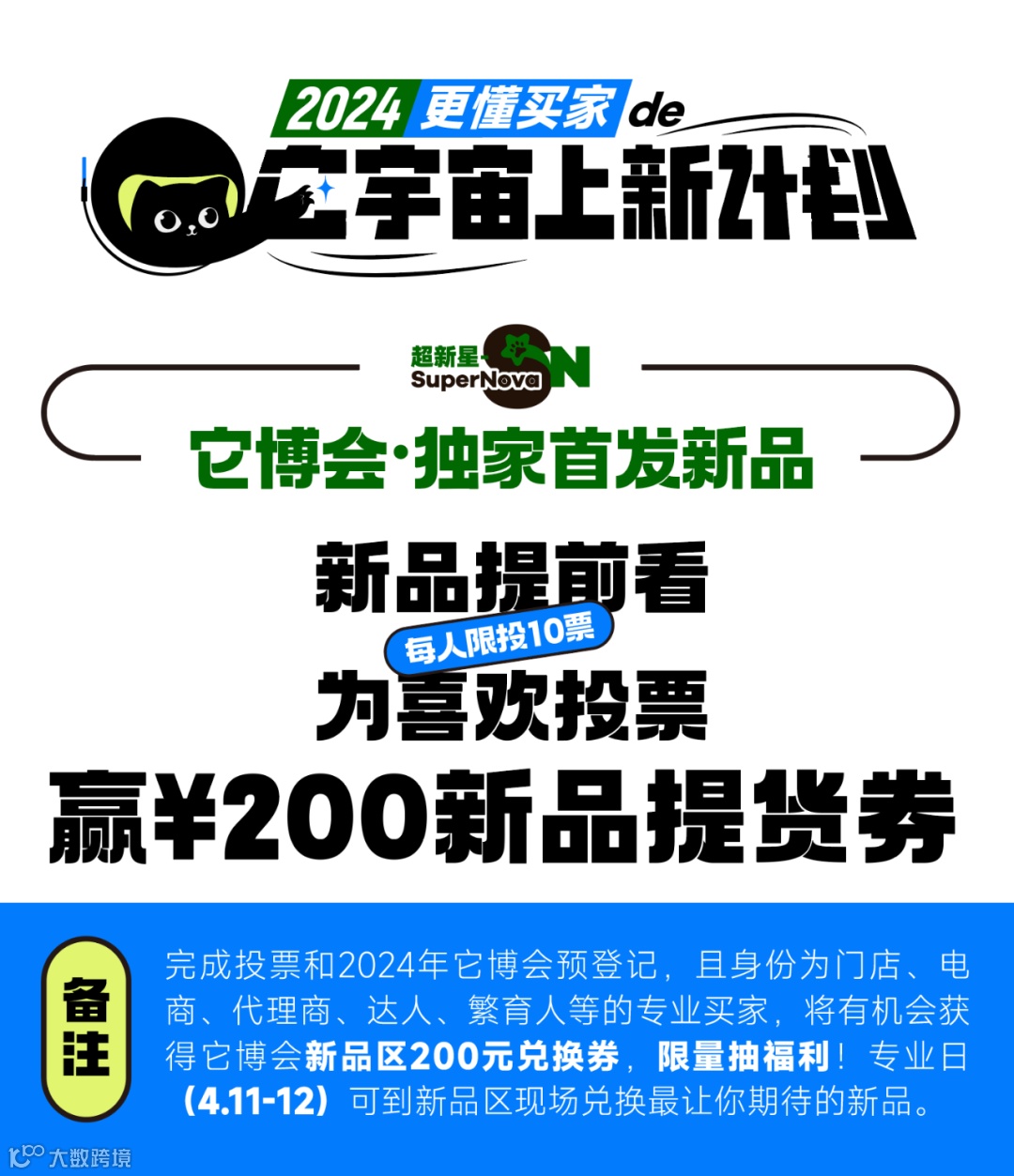 需要注意的是,只有同时完成它博会新品超级番投票和2024年它博会预登记,且身份为门店、电商、代理商、达人、繁育人等的专业买家,才有机会抽取限量福利。