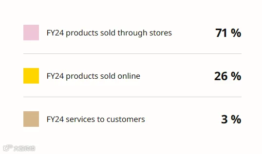 2024财年宜家新开店铺56家,其中包括3家大型商场、8家小型商场和44个计划/订单点。亮点之一是哥伦比亚零售业务的扩张,宜家在当地新开了2家商店并顺利开展电子商务。