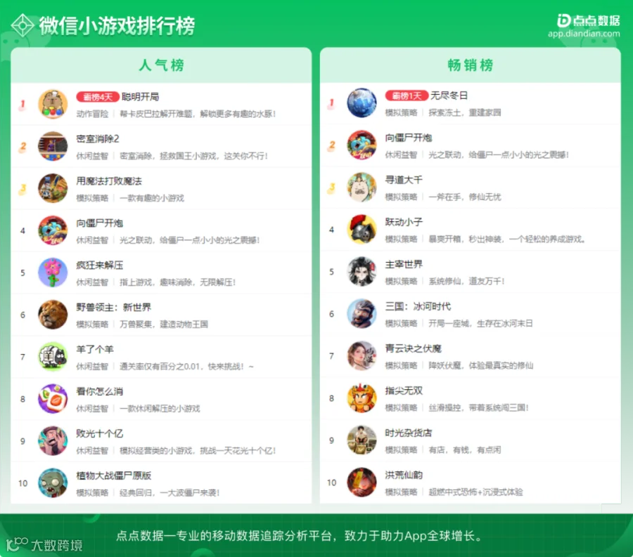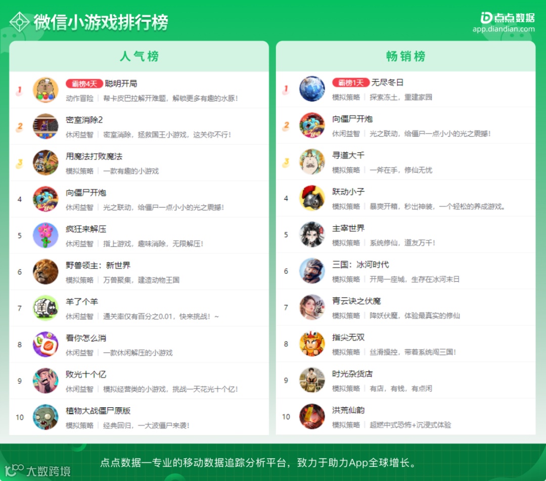 “卡皮巴拉”题材火遍游戏圈;《时光杂货店》接力手游产品上榜 -