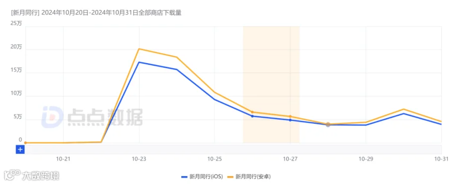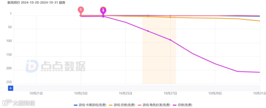 10月23日,由烛薪网络打造的新怪谈二次元手游《新月同行》正式发布并于24日开启公测。根据点点数据统计,游戏发布预下载首日便冲进中国大陆地区App Store免费总榜前五,并于次日正式公测首日登顶游戏类别免费榜。畅销榜成绩方面,该游戏则是在卡牌游戏、角色扮演两个类别畅销榜排名进入前十并保持较为稳定的趋势。