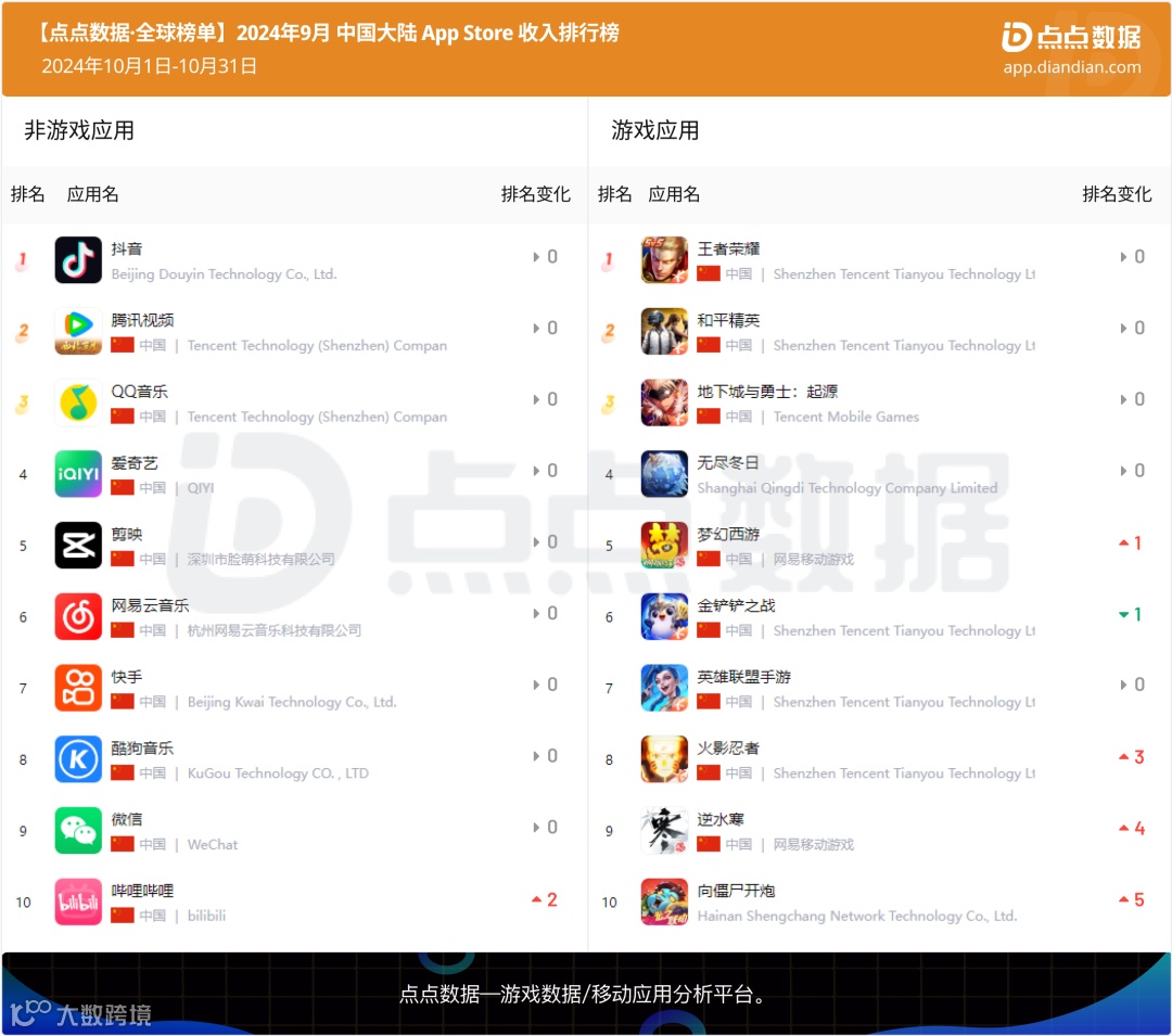 《三角洲行动》上线次月登顶手游下载冠军;《向僵尸开炮》上榜收入榜前十