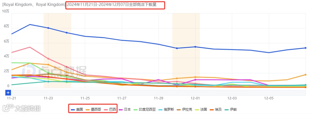 截至目前,该作全球上线17天,总下载量为403万(上线两周下载量约为369万),美国、墨西哥、巴西分别占比25.94%、6.81%以及6.61%位列TOP3。