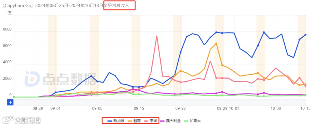 收入方面,《Archero 2》9月底才产生可以被记录的流水数据,其日流水一路从2000元左右增长至破20000元,测试至今的两周其累计流水预估在12.4万左右,越南、新加坡、加拿大以41.7%、16.87%、15.96%的占比位列前三。