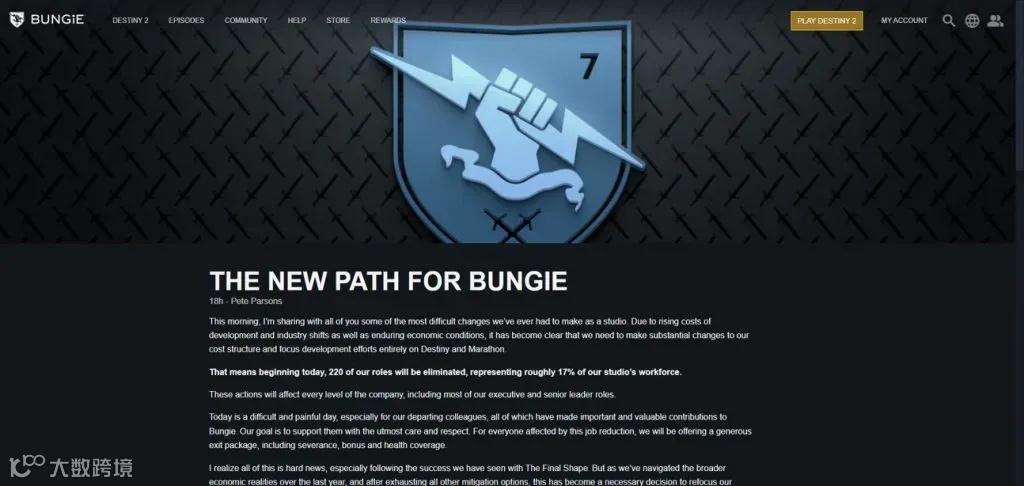 为应对索尼信任危机与完成财务指标,Bungie确认裁员100人左右(占工作室总人数的8%),新作《马拉松》也被推迟到了2025年,此外还削减了招聘headcount、节日奖金、团建旅游预算等多项企业运营成本。