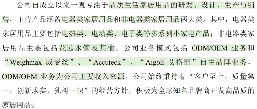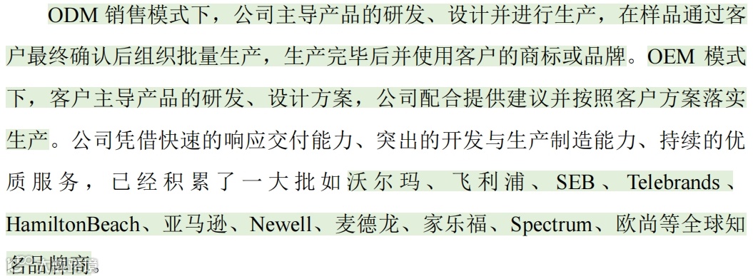 (2)发行人业务模式包括ODM/OEM业务和自主品牌业务,ODM/OEM业务为主要收入来源。