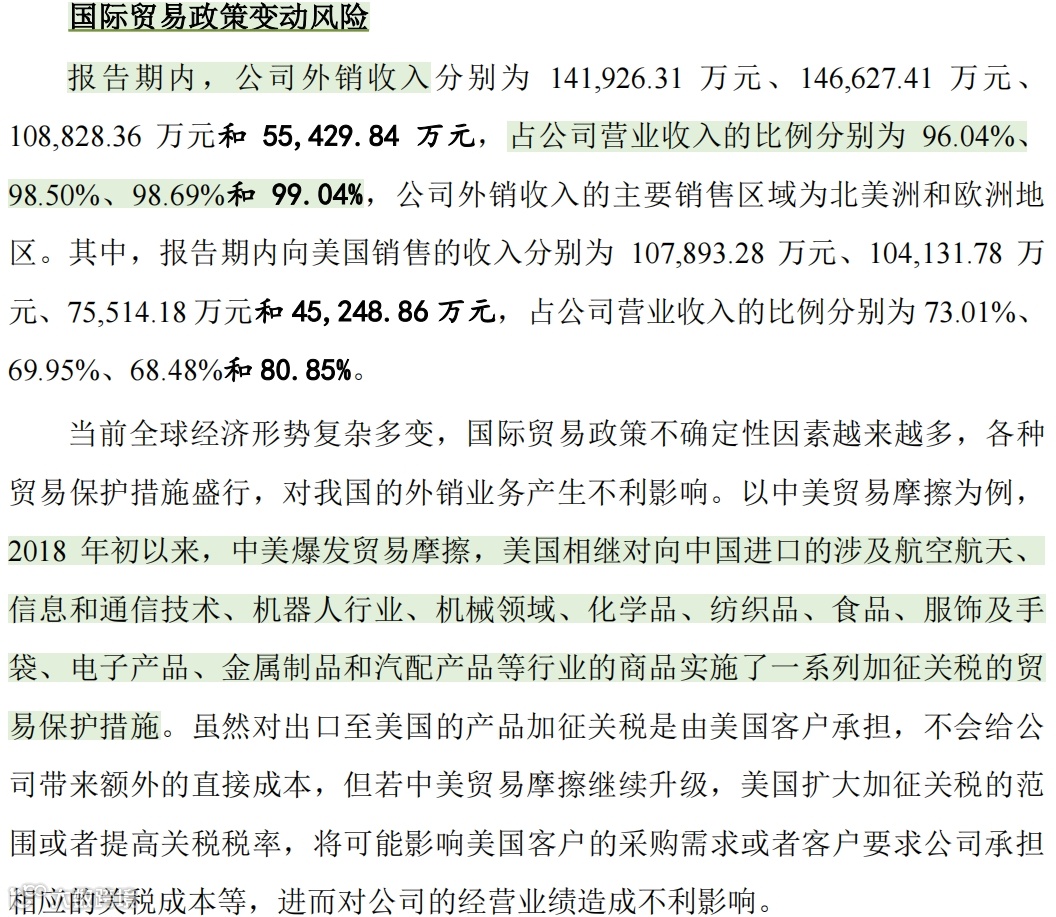 (3)报告期内,发行人外销收入占比分别为95.08%、96.81%、99.05%和99.14%。