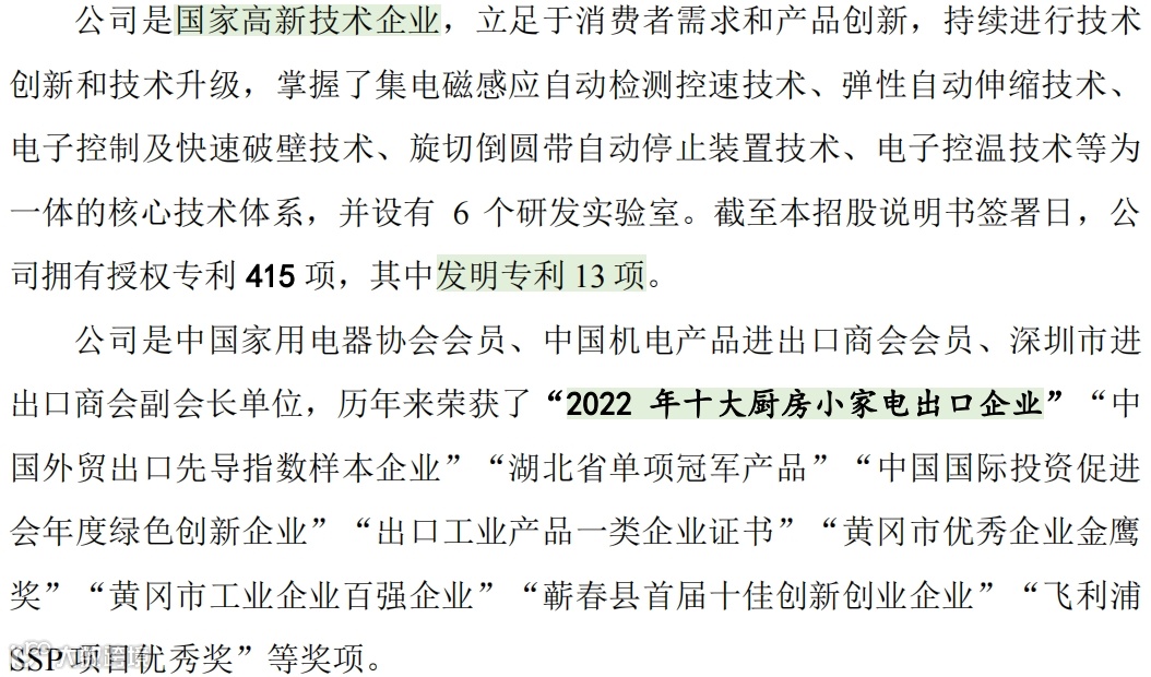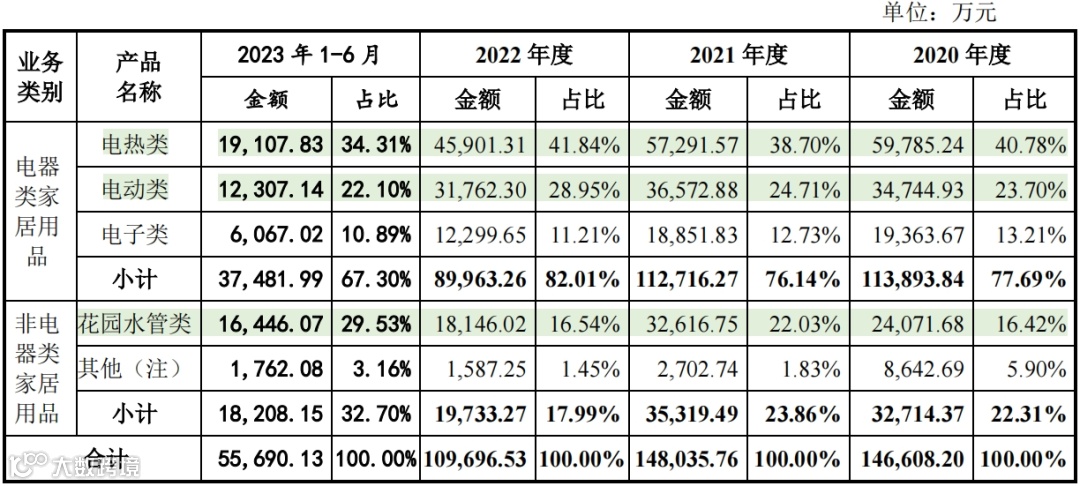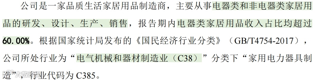 (1)发行人主要产品涵盖电器类家居用品和非电器类家居用品两大类。其中电器类家居用品主要为各类小家电产品,报告期内,发行人电器类家居用品收入占比均超过70%。